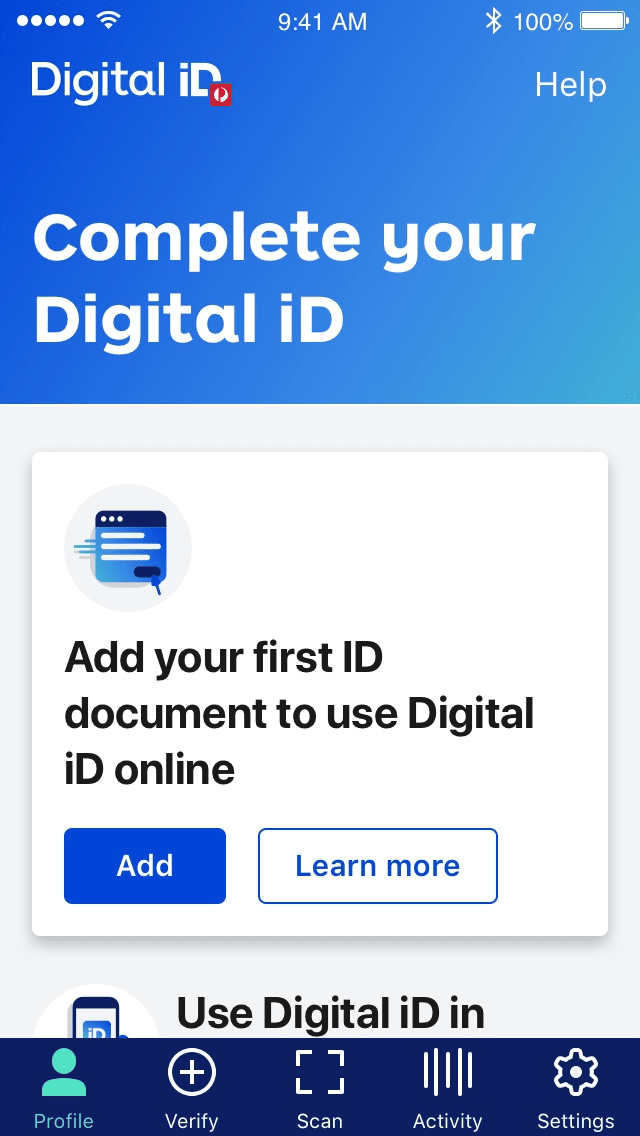 Leveraging our established UX patterns and verification tech, we crafted an onboarding experience that explained Digital iDs use and guided them through the process of setting up their Digital iD on their phone.